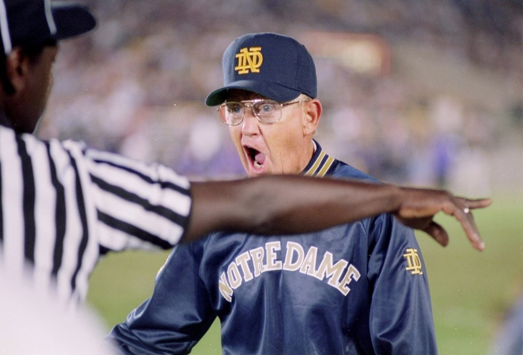 But for older college football fans, he will be remembered for coaching the storied Fighting Irish to their last national championship, coming in 1988.