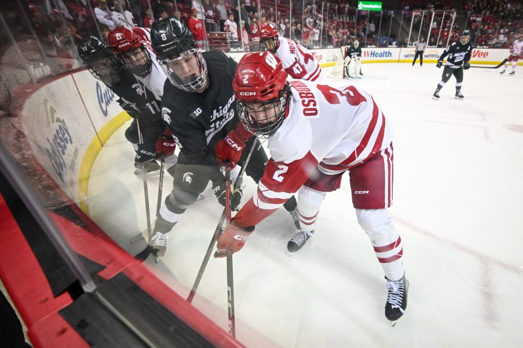 The Spartans kept pace with Michigan by sweeping Wisconsin. Ryker Lee (NSH) had three points in the series, while physical defenseman Colin Ralph (STL) had a couple assists himself. He now has an impressive 10 points on the year – and offense isn’t even his best attribute.