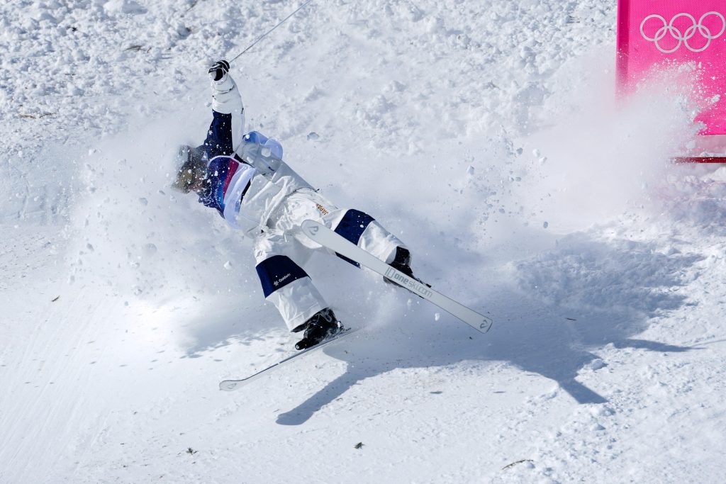 In men’s dual moguls on Sunday, Feb. 15, Japanese freestyle skier Ikuma Horishima nearly lost it on the final jump, but somehow remained upright to cross the finish line … backwards.